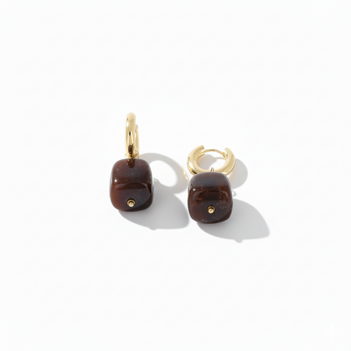 Boucles d'oreilles de type créoles composées d'une perle carrée en résine. Fermoir charnière.