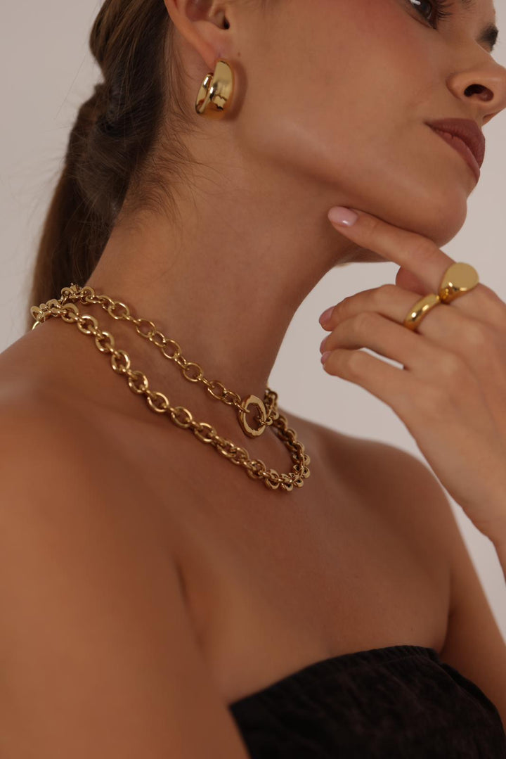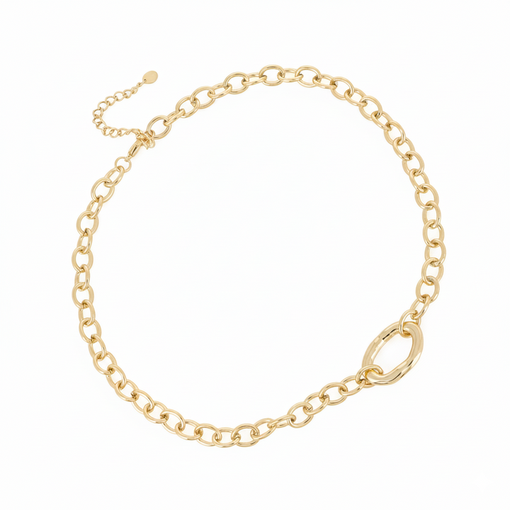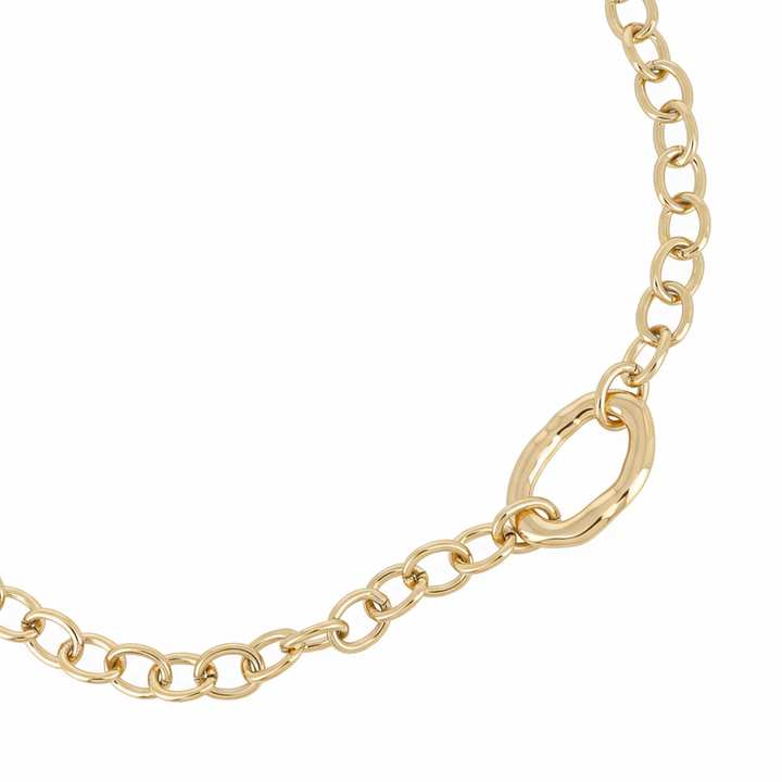 Collier en acier inoxydable composé d'anneaux ovales et d'un pendentif ovale légèrement ondulé.